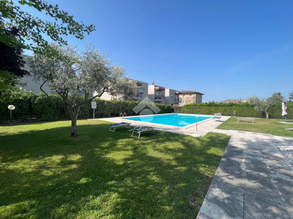 BARDOLINO - A pochi passi dal centro del paese, completamente arredato ed inserito in splendido contesto con piscina e verde comune, proponiamo in vendita un ampio appartamento trilocale 'duplex', con due camere matrimoniali, doppi servizi finestrati, due terrazzi abitabili, una spaziosa cantina ed una comoda autorimessa.