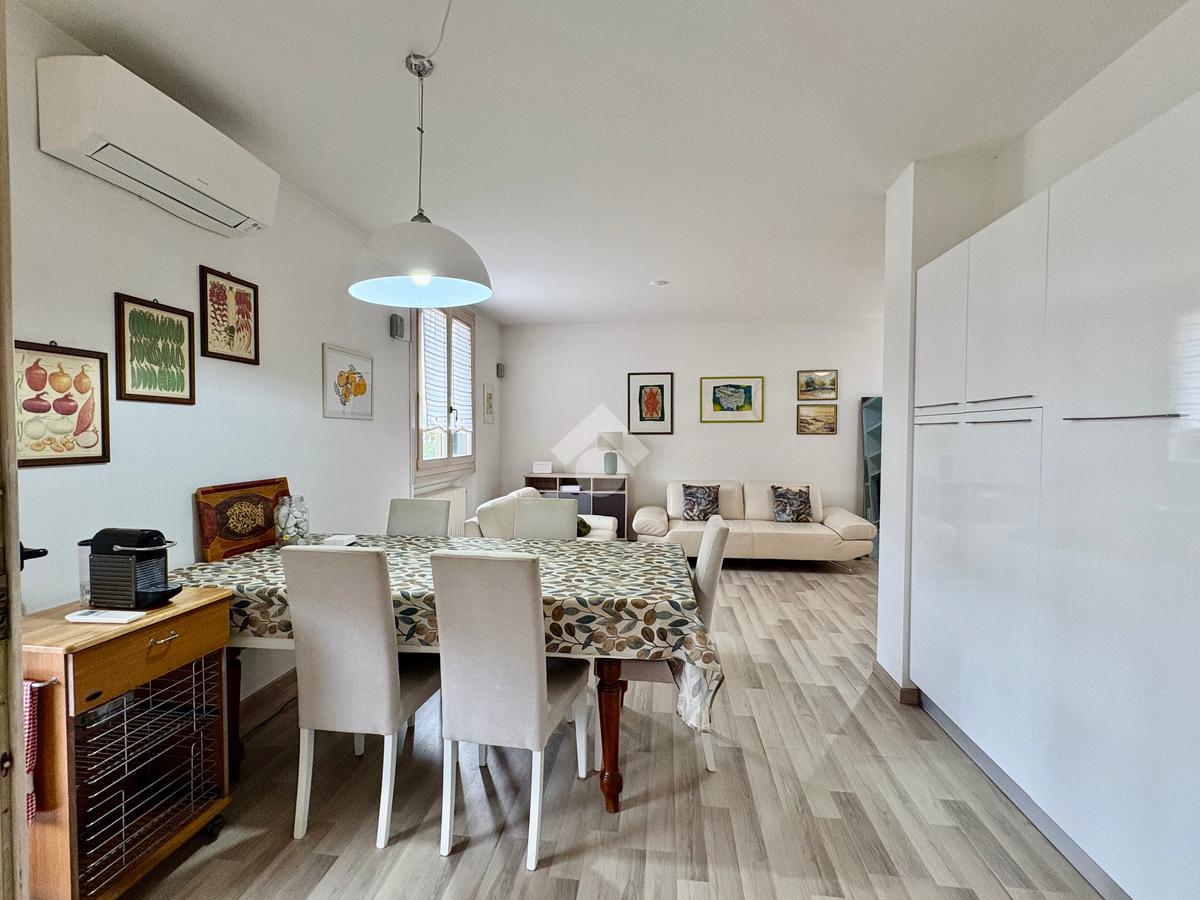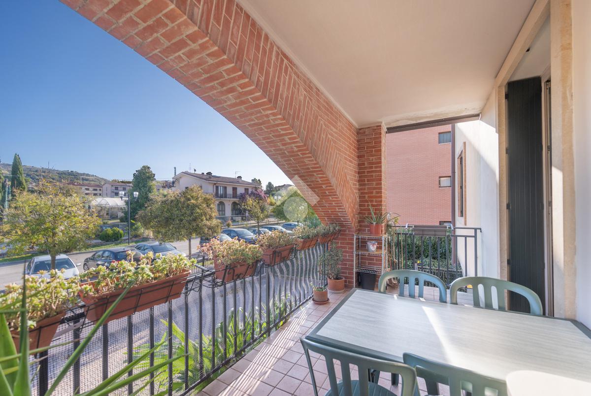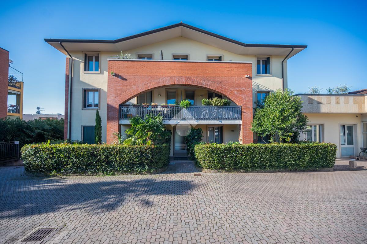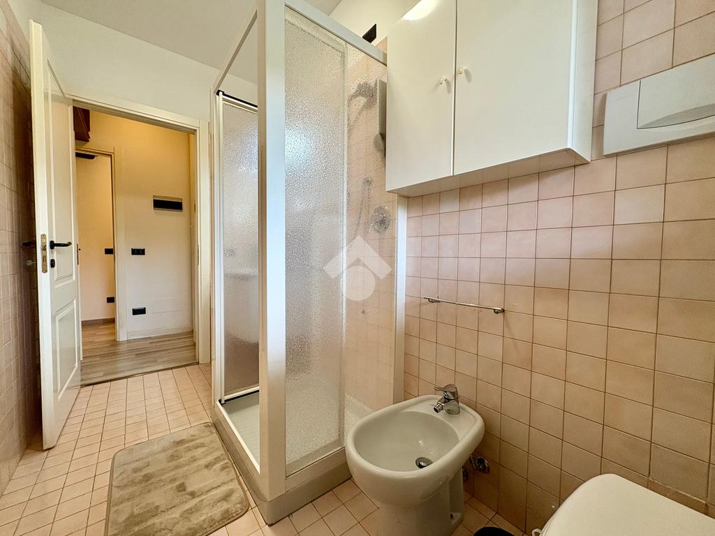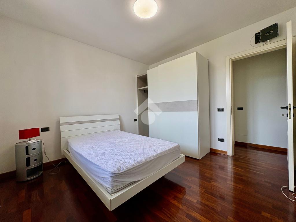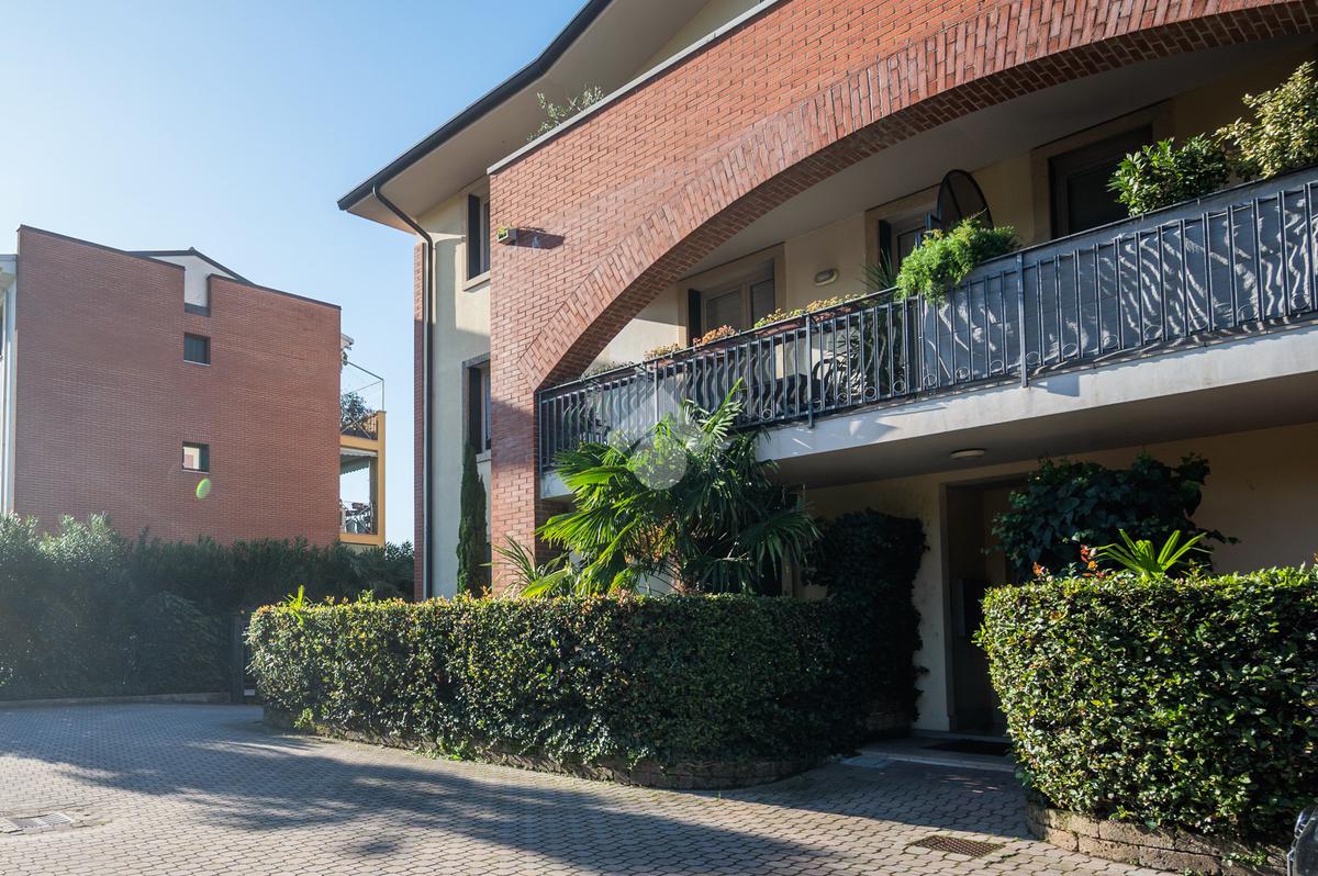 L'immobile si compone, al piano primo, di un' ampia zona giorno suddivisa in angolo cottura, pranzo e luminosa zona living con accesso ad un terrazzo coperto e abitabile, un antibagno ed un bagno con doccia finestrato. A mezzo di una scala in legno accediamo alla zona notte posta al piano secondo, dove troviamo due camere matrimoniali, una delle quali servita da un secondo terrazzo, ed un bagno con vasca finestrato. L' abitazione è dotata di impianto di condizionamento in tutti i locali, recentemente installato. Al piano seminterrato l'immobile dispone di un' ampia cantina e di una comoda autorimessa. All'esterno, la proprietà condominiale mette a disposizione un parcheggio comune.