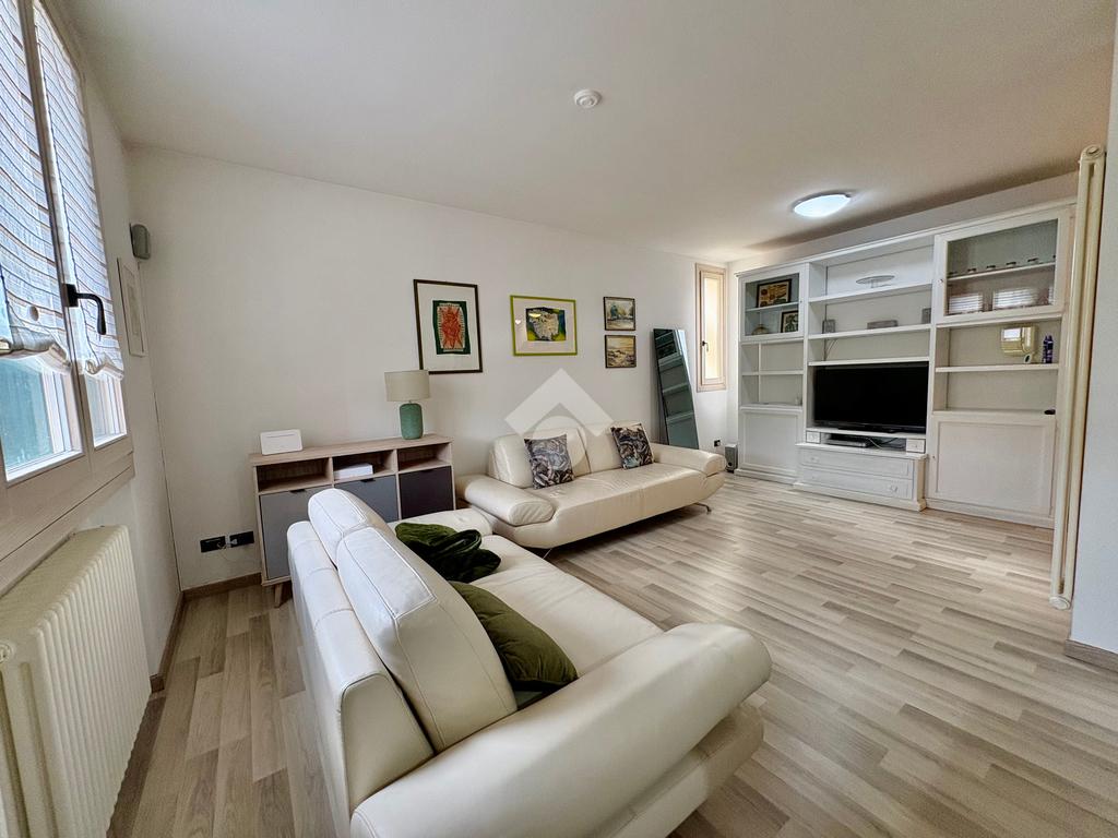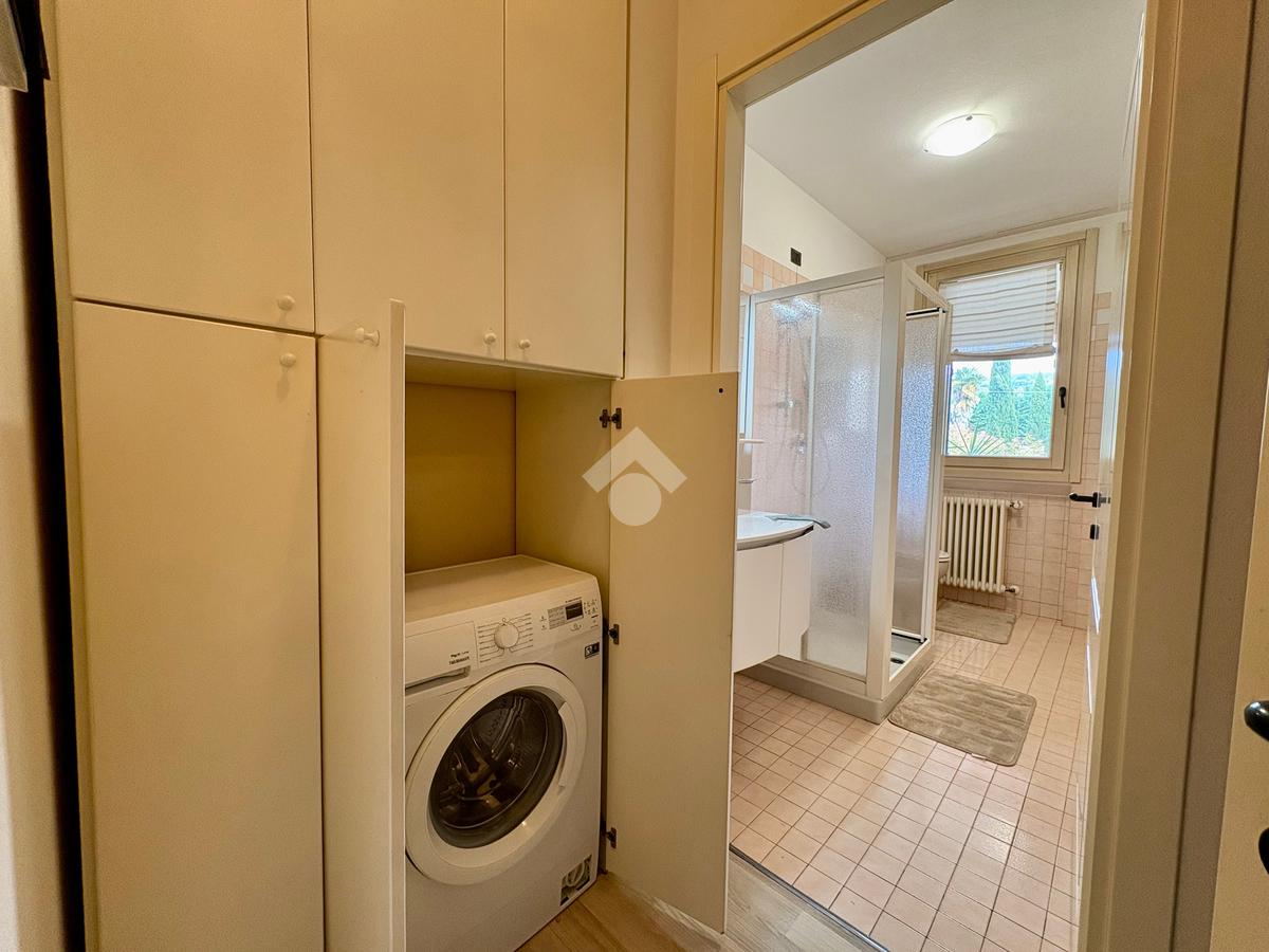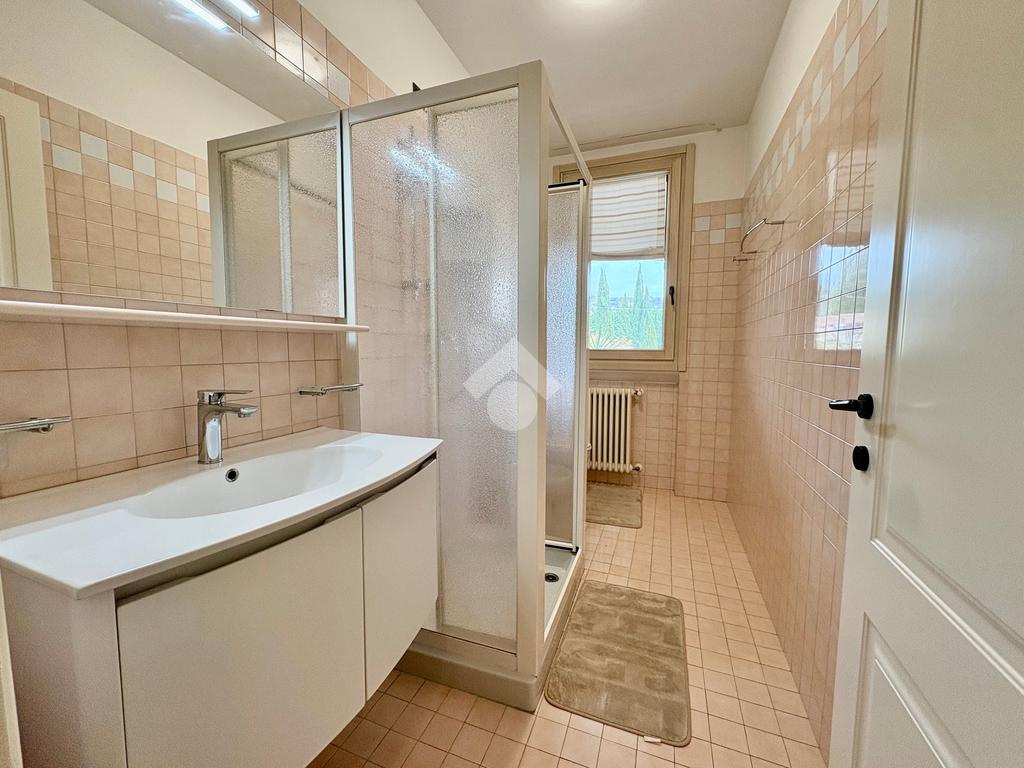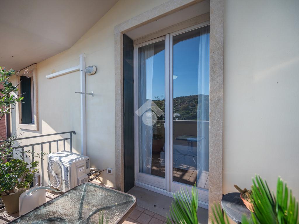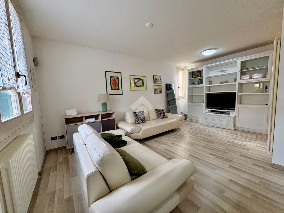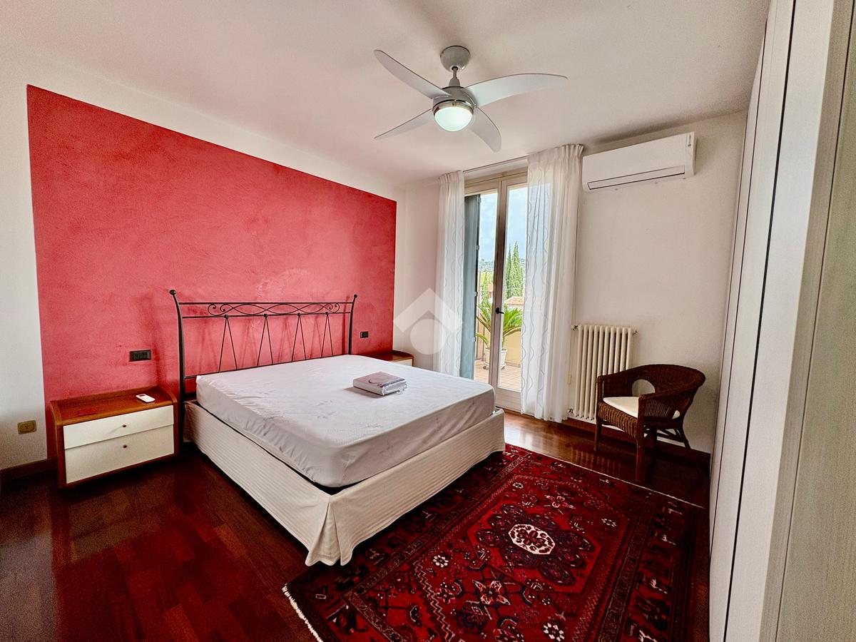 L'immobile si compone, al piano primo, di un' ampia zona giorno suddivisa in angolo cottura, pranzo e luminosa zona living con accesso ad un terrazzo coperto e abitabile, un antibagno ed un bagno con doccia finestrato. A mezzo di una scala in legno accediamo alla zona notte posta al piano secondo, dove troviamo due camere matrimoniali, una delle quali servita da un secondo terrazzo, ed un bagno con vasca finestrato. L' abitazione è dotata di impianto di condizionamento in tutti i locali, recentemente installato. Al piano seminterrato l'immobile dispone di un' ampia cantina e di una comoda autorimessa. All'esterno, la proprietà condominiale mette a disposizione un parcheggio comune.