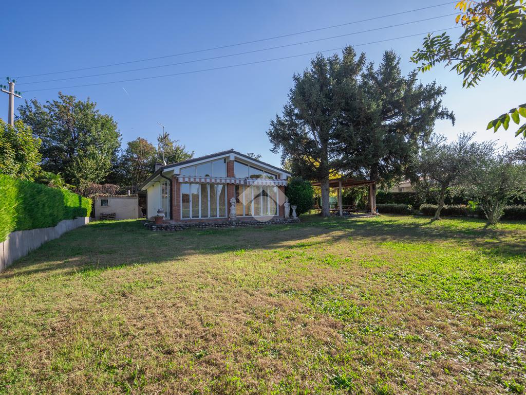 ed è circondato da un giardino di proprietà di circa 1100 mq. La villetta,