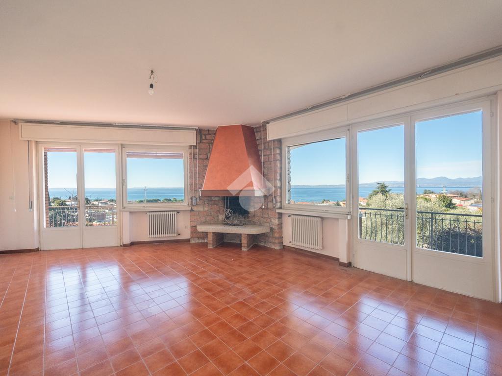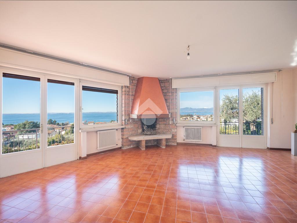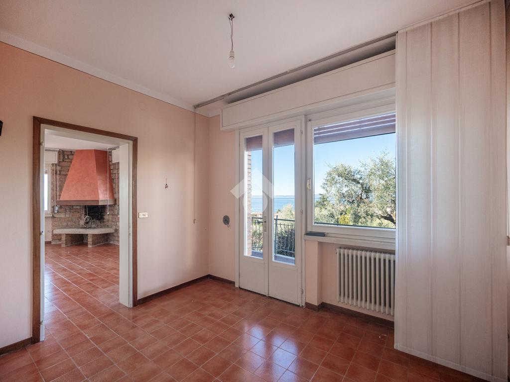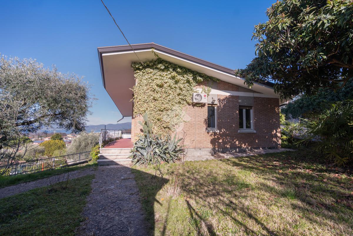 L’ abitazione, risalente agli anni 70, è distribuita tutta su un piano ed è suddivisa in un ampio salone con camino, dotato di luminose vetrate dalle quali si può ammirare una vista lago a 180 gradi, una zona pranzo con cucina separata, tre camere da letto e doppi servizi. Un ampio terrazzo abitabile all'esterno, che corre lungo tutta la facciata ad ovest del fabbricato, per godere di piacevolissimi momenti conviviali e splendidi tramonti, un terreno di 800 mq , una pratica cantina ed un'autorimessa completano la proprietà. La villa, sebbene si presti ad un riammodernamento di impianti e finiture, è ben tenuta e presenta una struttura solida. Per le sue caratteristiche è l' ideale sia come abitazione di residenza sia come esclusivissima casa vacanze. Altre foto a breve disponibili.